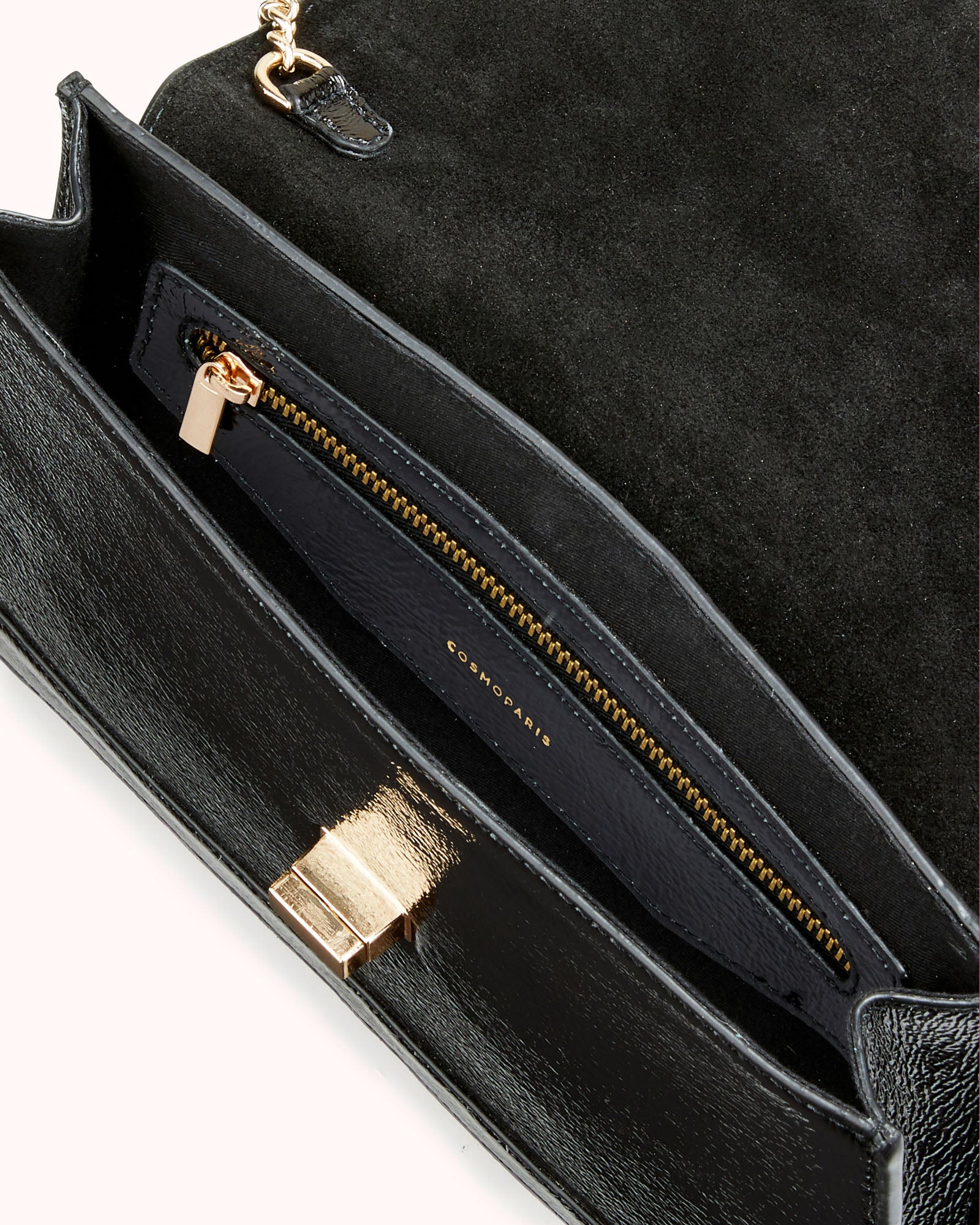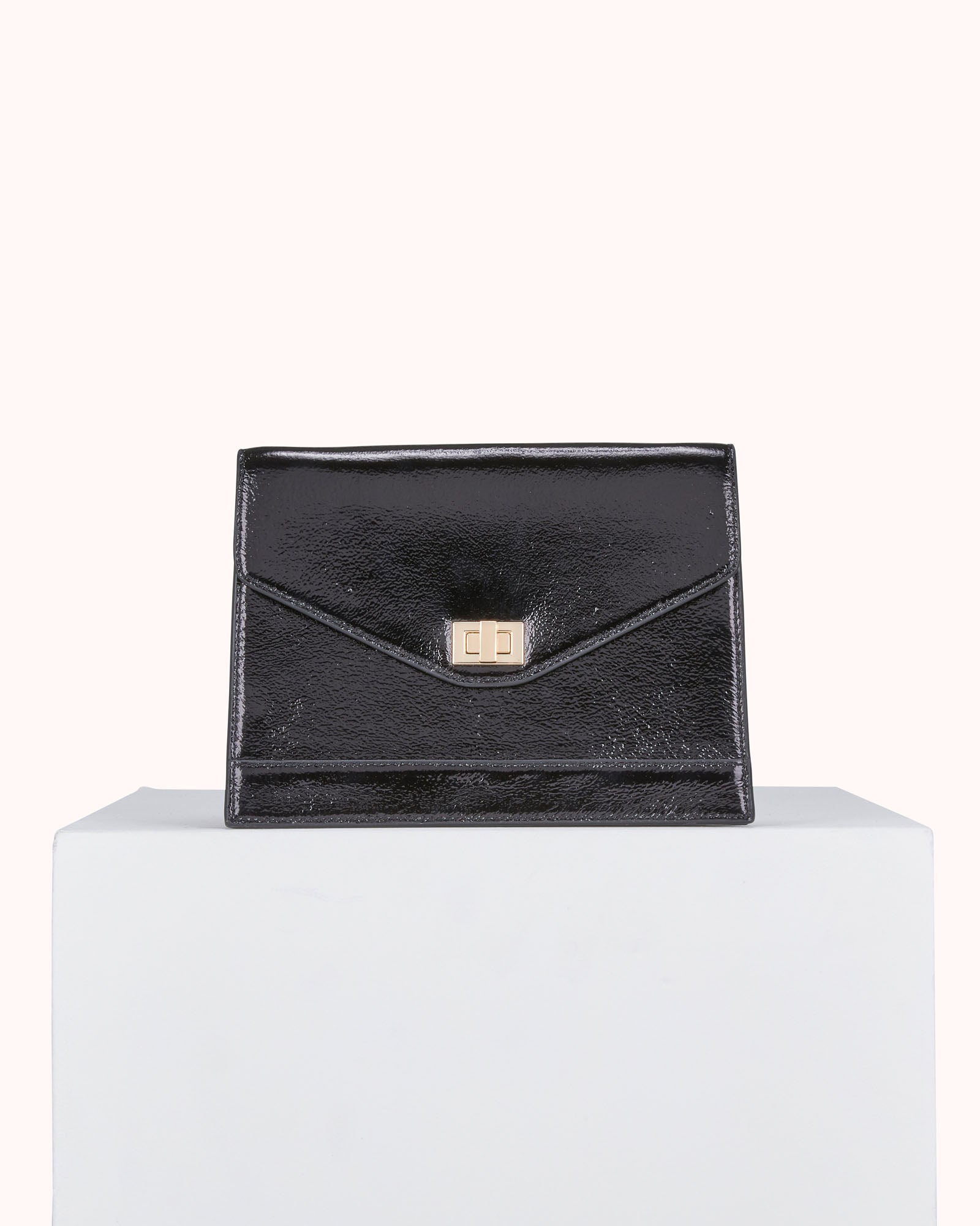 The ALIETI clutch, greatly inspired by our ALANIA bag, completes this line that you liked so much. Its slightly trapezoid shape is ideal and suitable for all your everyday objects. Its gold chain allows it to be worn on the shoulder or cross body, and its two color variations will suit everyone: in black naplack leather for a sober and chic look, in pewter cracked metallic leather to bring a rock and shinny touch to your outfit. There is something for everyone! Dimensions: H17 cm x W23 cm x D2cm