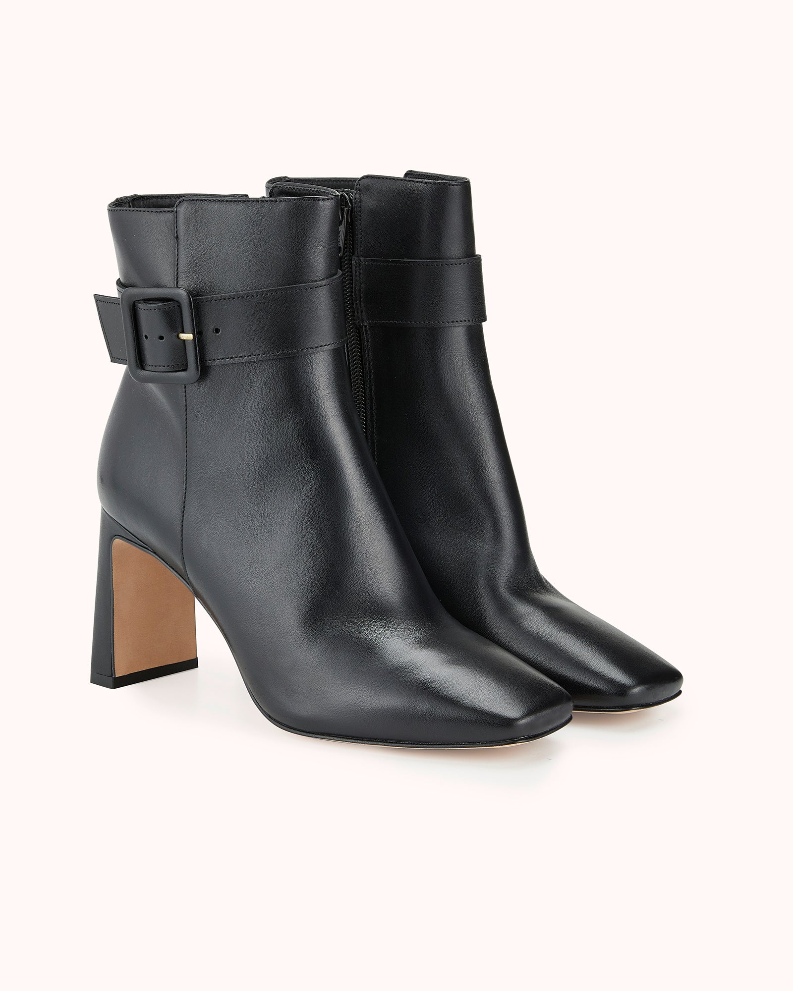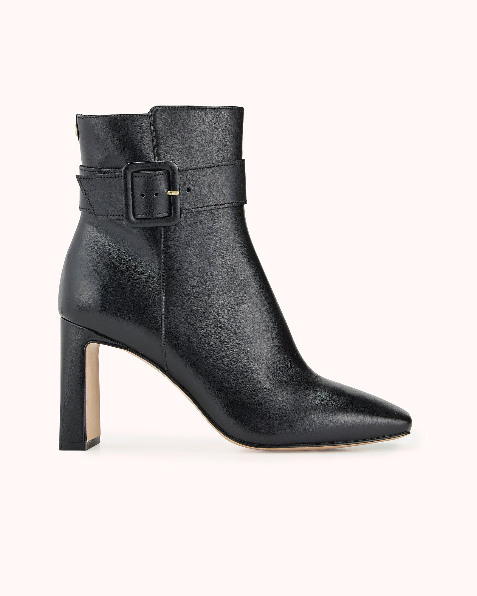 This season, fall in love with our new BELMIRA heeled ankle boot. With its 8 cm high heel, it offers comfort and stability. Crafted in smooth black leather and adorned with a pretty leather-covered buckle, it’s the perfect pair for everyday wear.