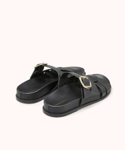 Notre modèle CHANI est une mule plate en cuir lisse noir. Avec son jeu de brides croisées et ornée d’une jolie boucle dorée, elle allie style et élégance. Sa semelle “footbed” vous assurera un confort optimal.